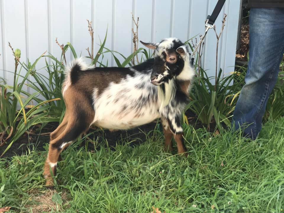 This is Lost Valley Z Mardi Gras, Midnight’s sire.  We were very happy to add this show winner’s offspring to our herd.  We can only hope she will inherit his milking genetics and showing traits!
